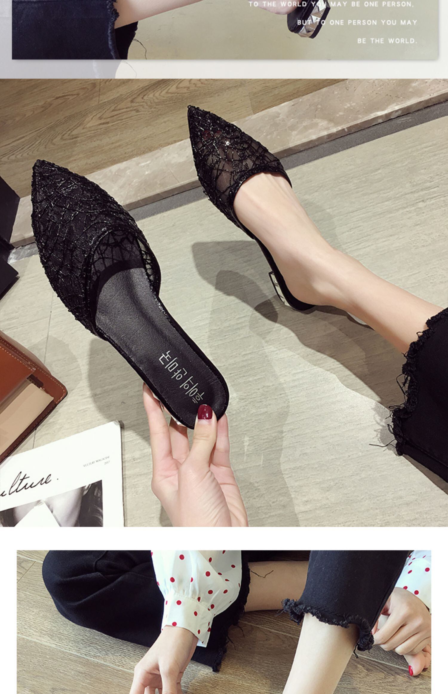 サンダルとスリッパレディースアウター2020新しい春バージョンのネット赤光口ハーフドラッグオールマッチスパンコールスパンコール厚ヒールミュラーシューズトレンド フェイクシューズ39315312554