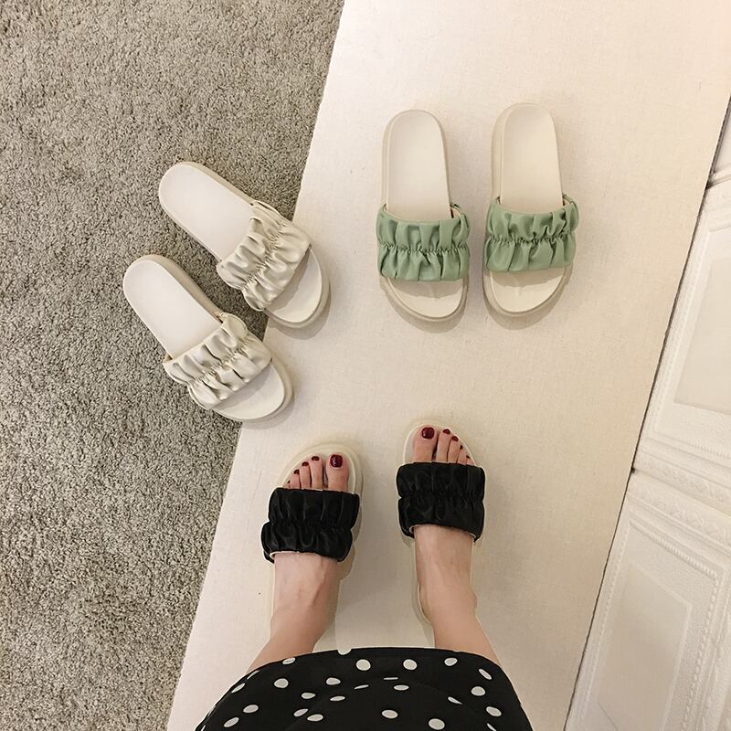 スリッパレディースアウター2020夏新作おでかけファッションオールマッチネット赤厚底夏蓮の葉サンダル フェイクシューズ98425865265
