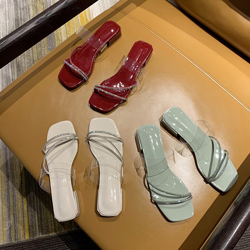 スリッパレディースアウターウェア2020夏の新しいファッションワイルドネットレッドインラインストーンローヒールカジュアルビーチサンダル フェイクシューズ72408924154