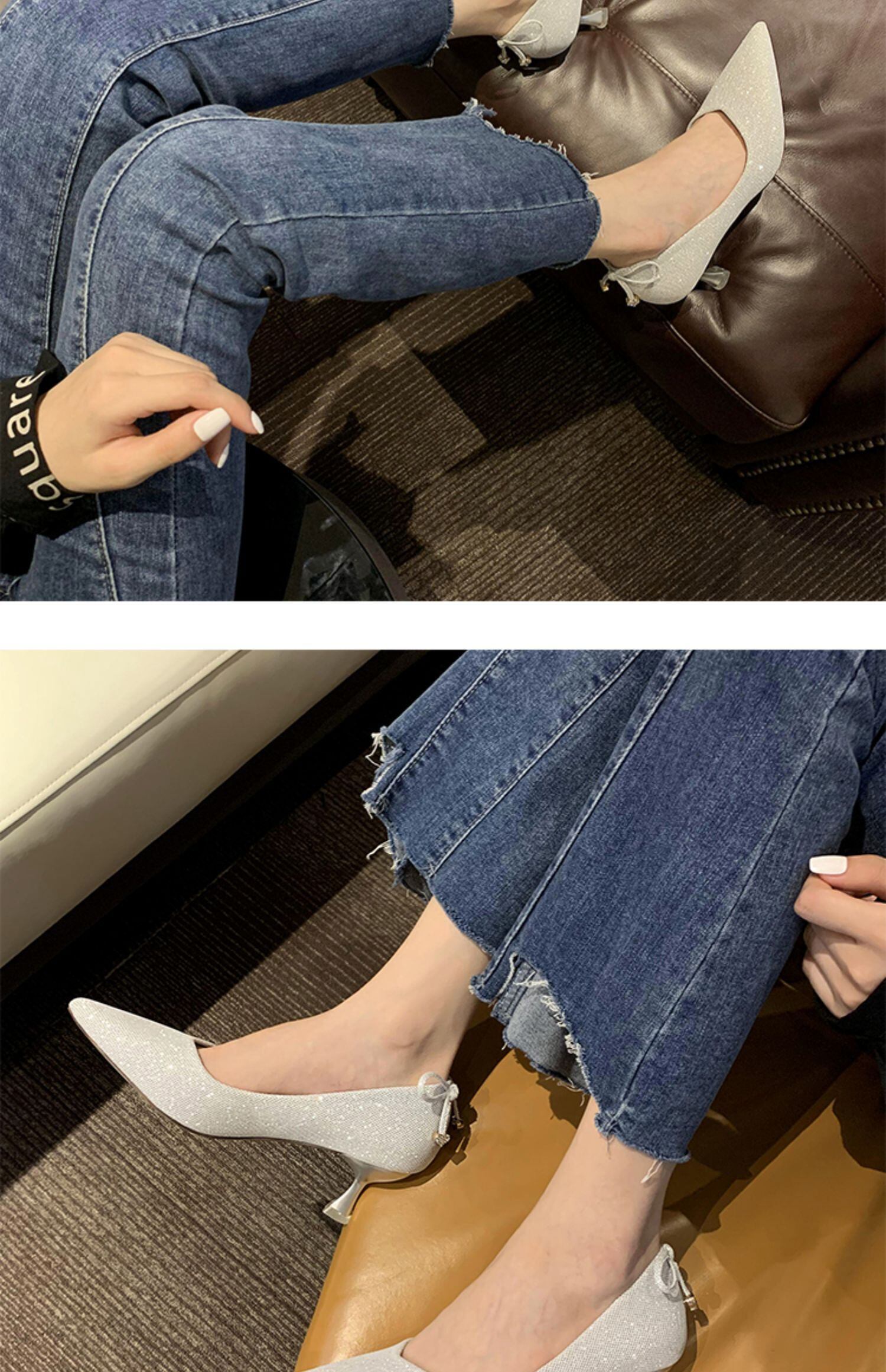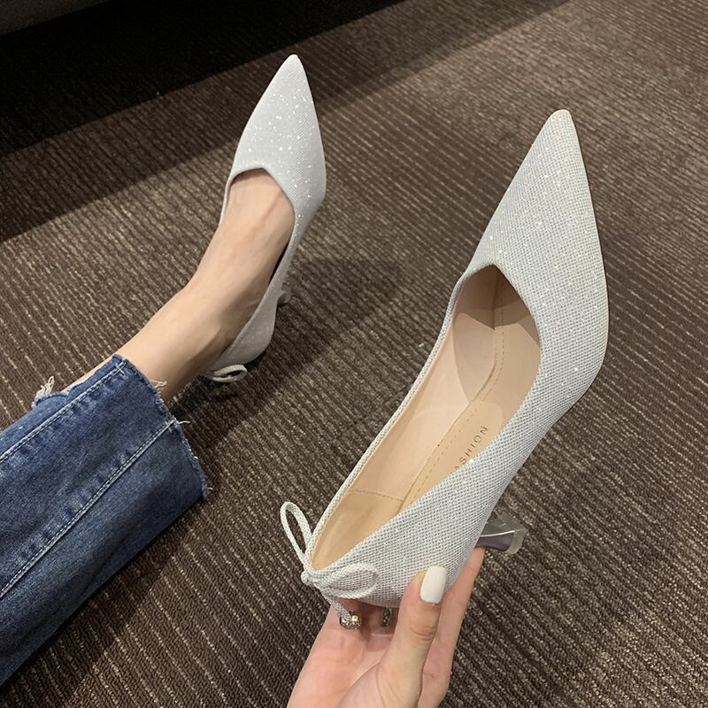 かかとの女性のスチレットヒール2020夏の新しいバージョンのinsネット赤の妖精スタイルの弓浅い口先の尖った単一の靴 フェイクシューズ44332459861
