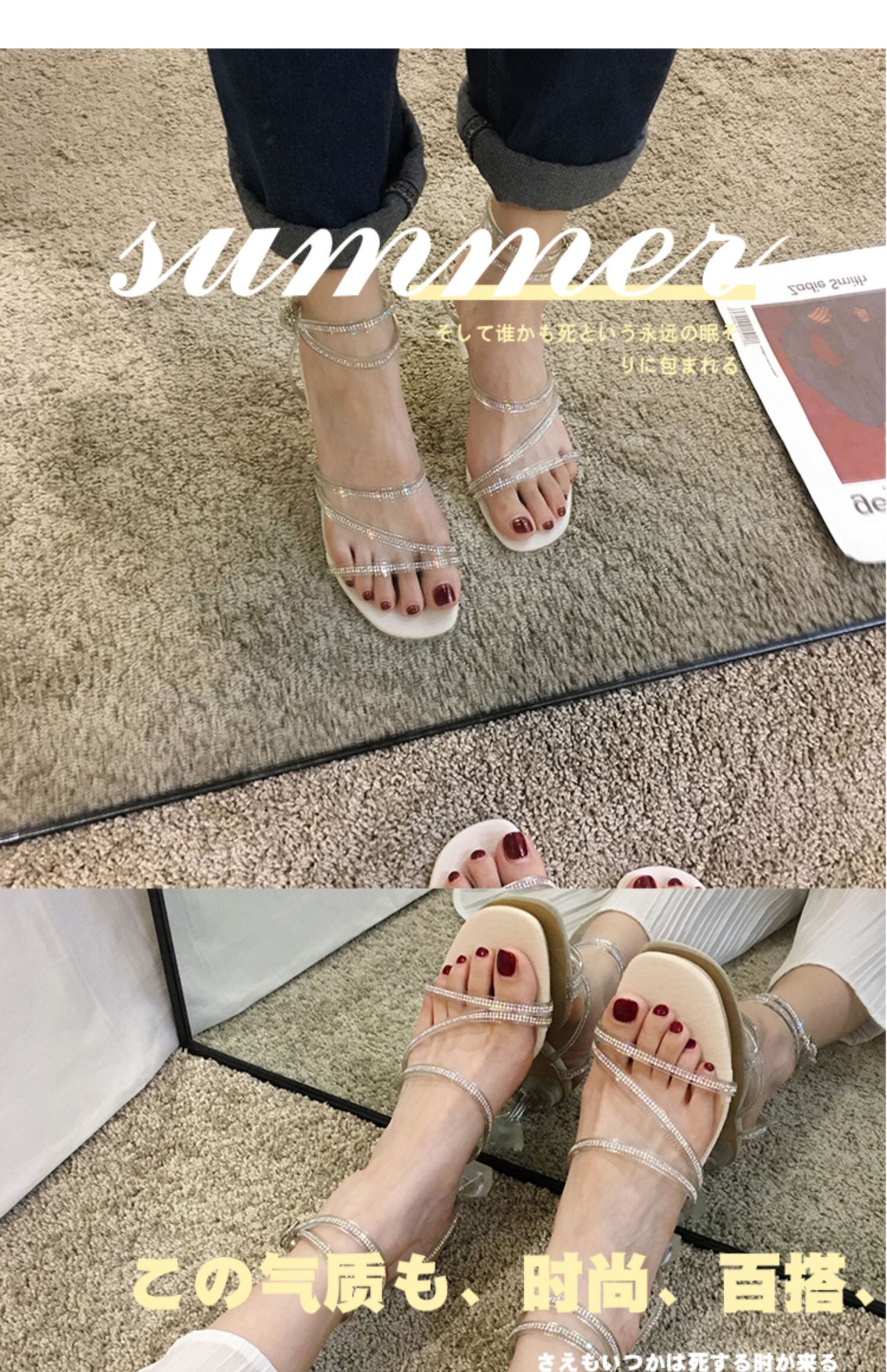 サンダル女性2020夏の新しいファッションワイルドネット赤イン潮オープントゥスティレットハイヒール フェイクシューズ13815509037