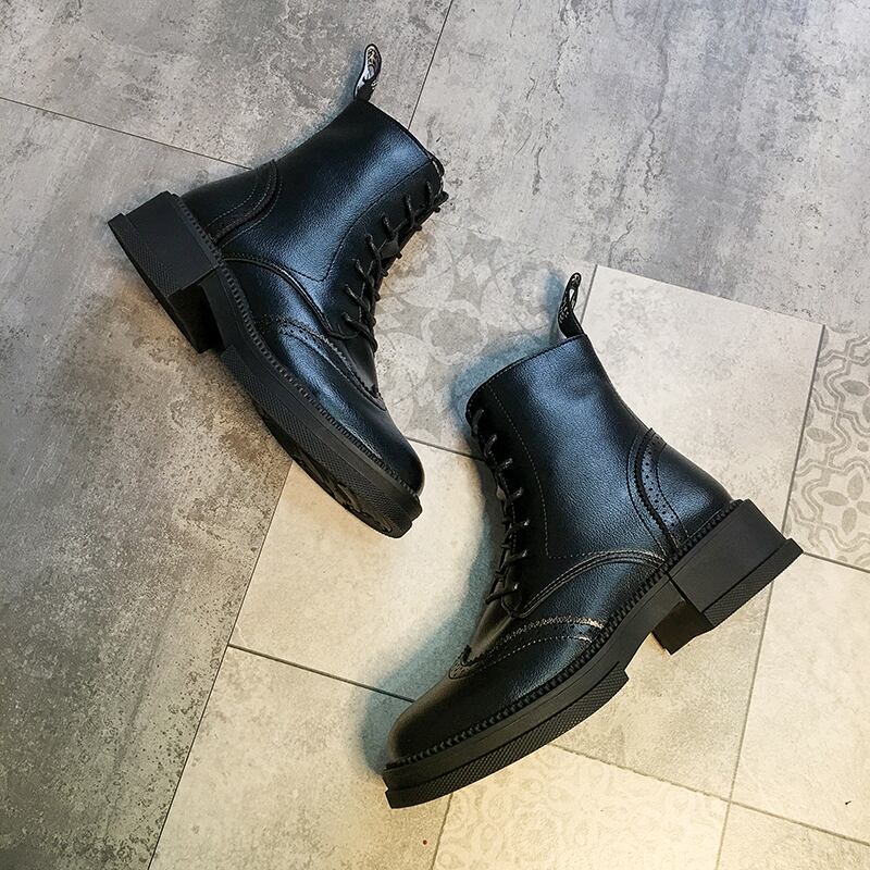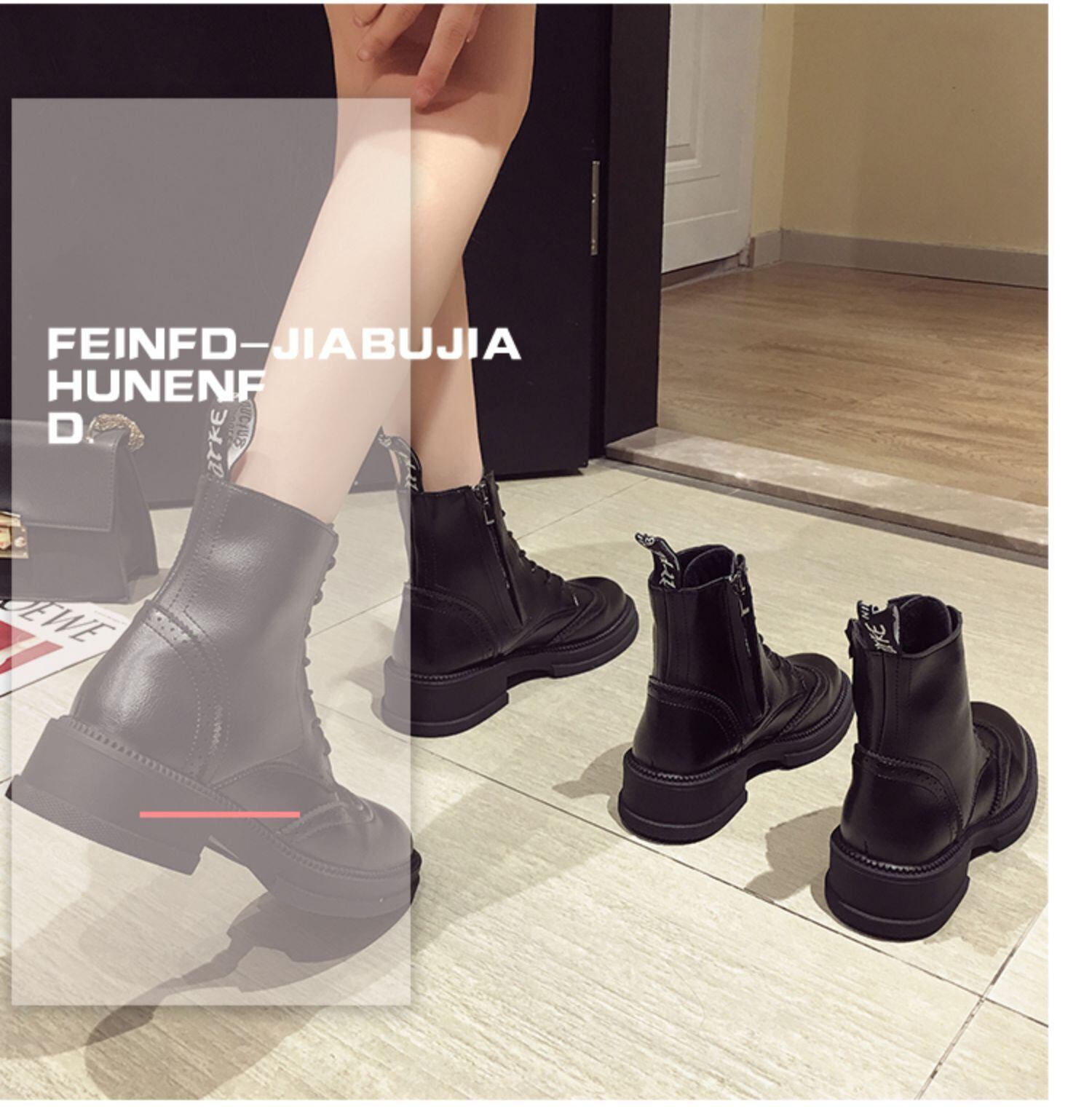 秋の靴マーティンブーツ女性の2020年の新しい英国のファンカーイン薄くて厚いフラットヒールの小さなショートブーツ秋 フェイクシューズ37575643672