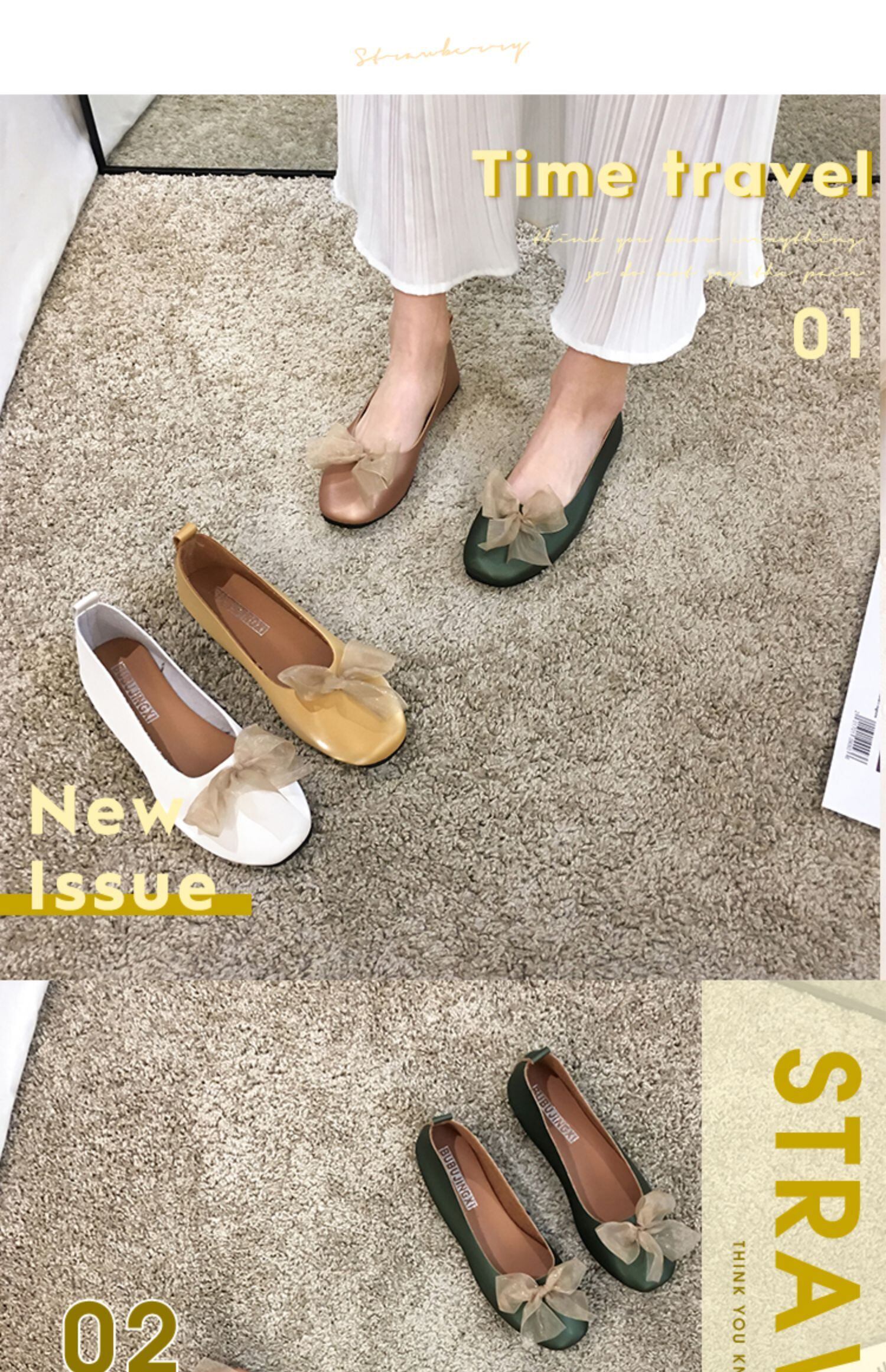 フラットシューズレディース2020新しい春バージョンのネットレッドワイルドボウスクープシューズファッションフェアリーウィンドピースシューズ フェイクシューズ77007770617