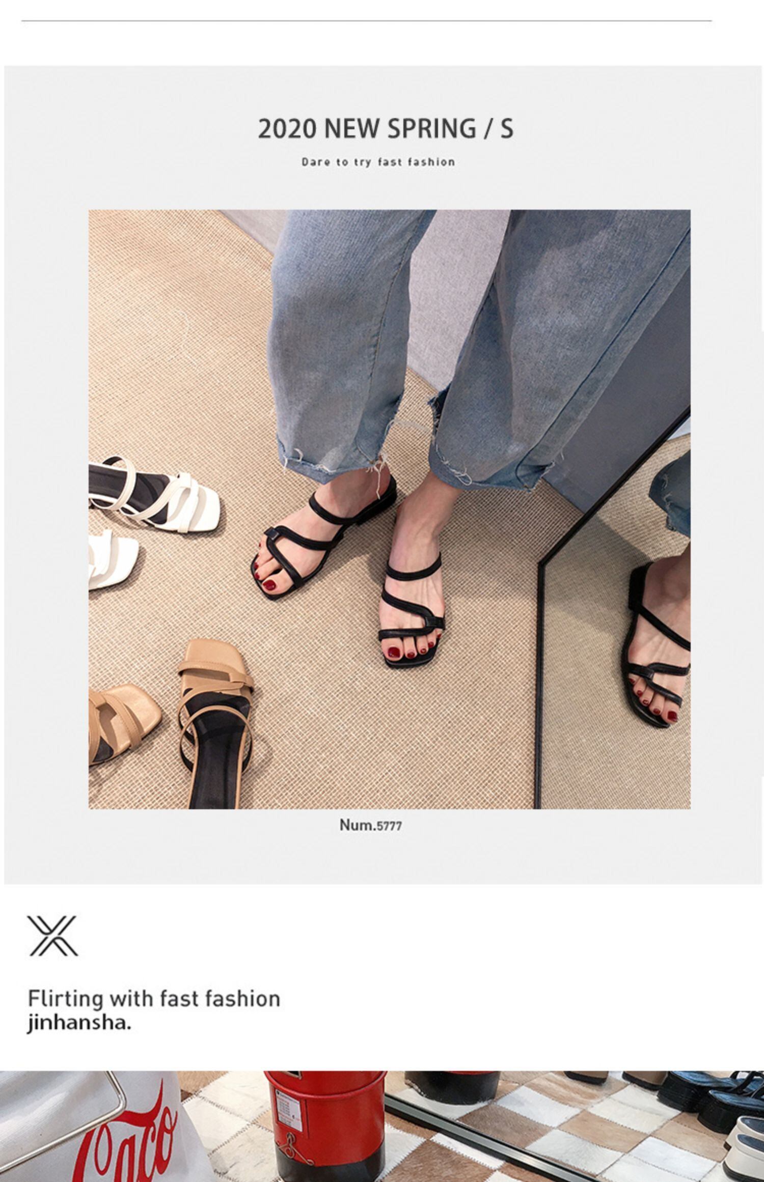 スリッパ女性の潮2020年春の新しいファッションオープントゥミッドヒール厚いヒールサンダルシンプルなビーチサンダル フェイクシューズ49198695924
