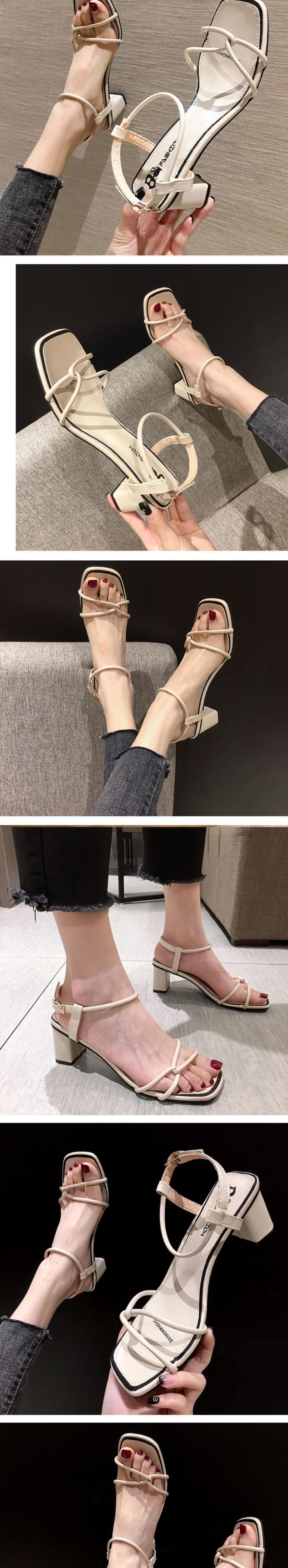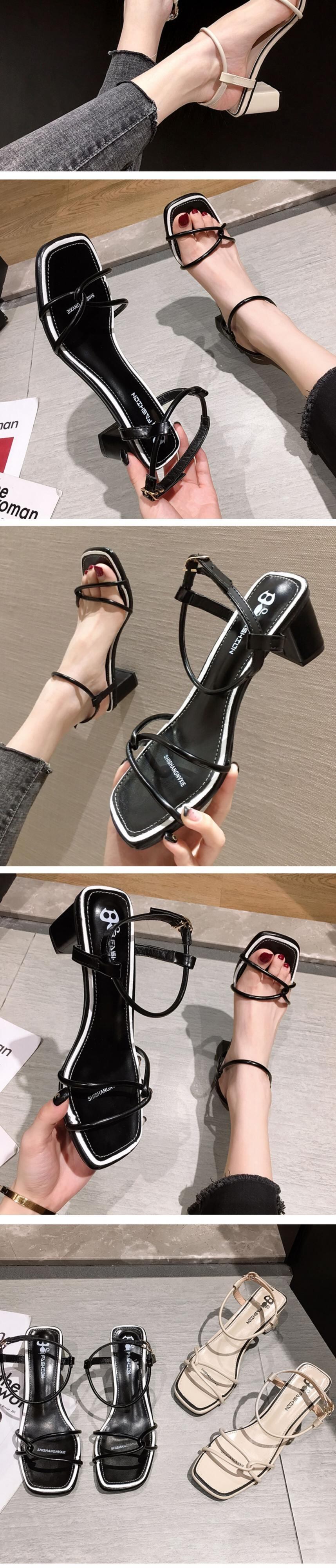 レッドサンダルレディースサマーブラックヒール 靴 シューズ ハイヒール 夏物 フェイクシューズ3736687589