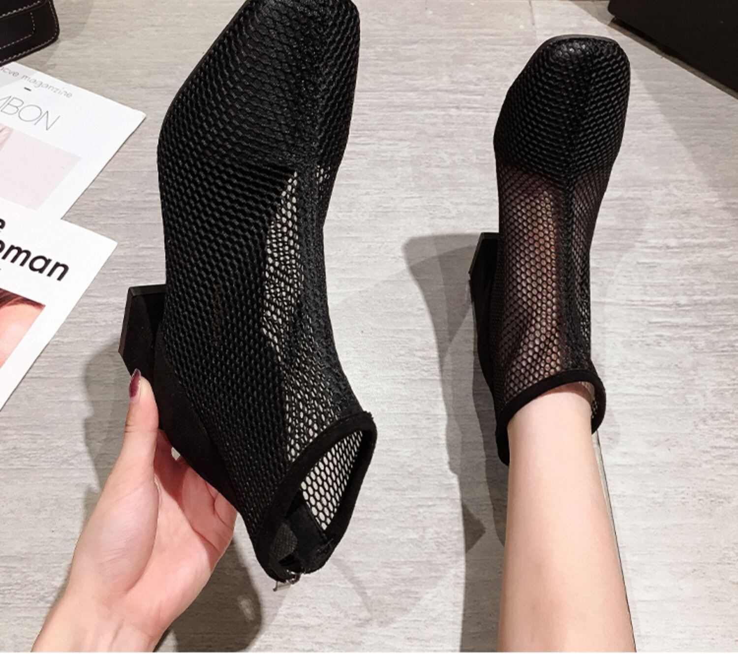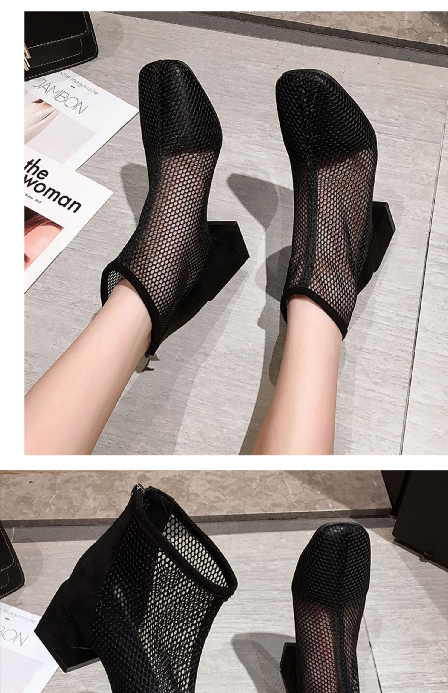 ブーツレディースサマースタイルショートジッパーサンダル ハイヒール 靴 シューズ 夏物 スクウェア フェイクシューズ49284777575