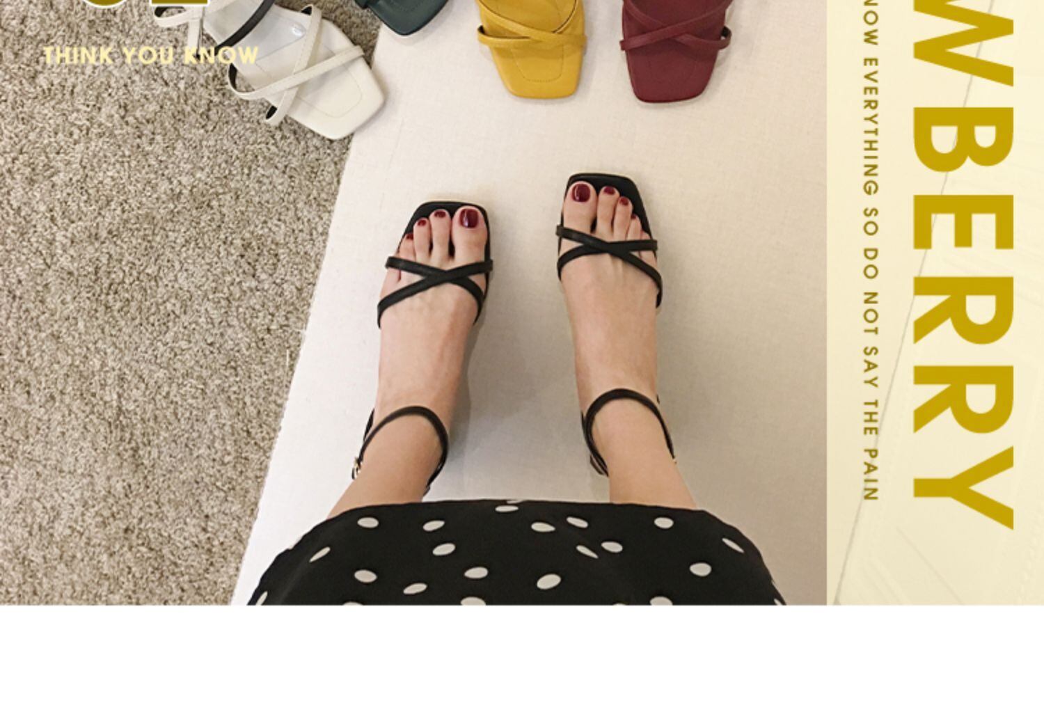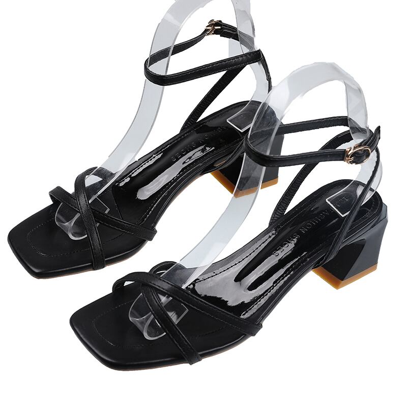 レッドサンダルレディースサマースタイルヒール ハイヒール 靴 シューズ 夏物 スクウェア フェイクシューズ72138944284