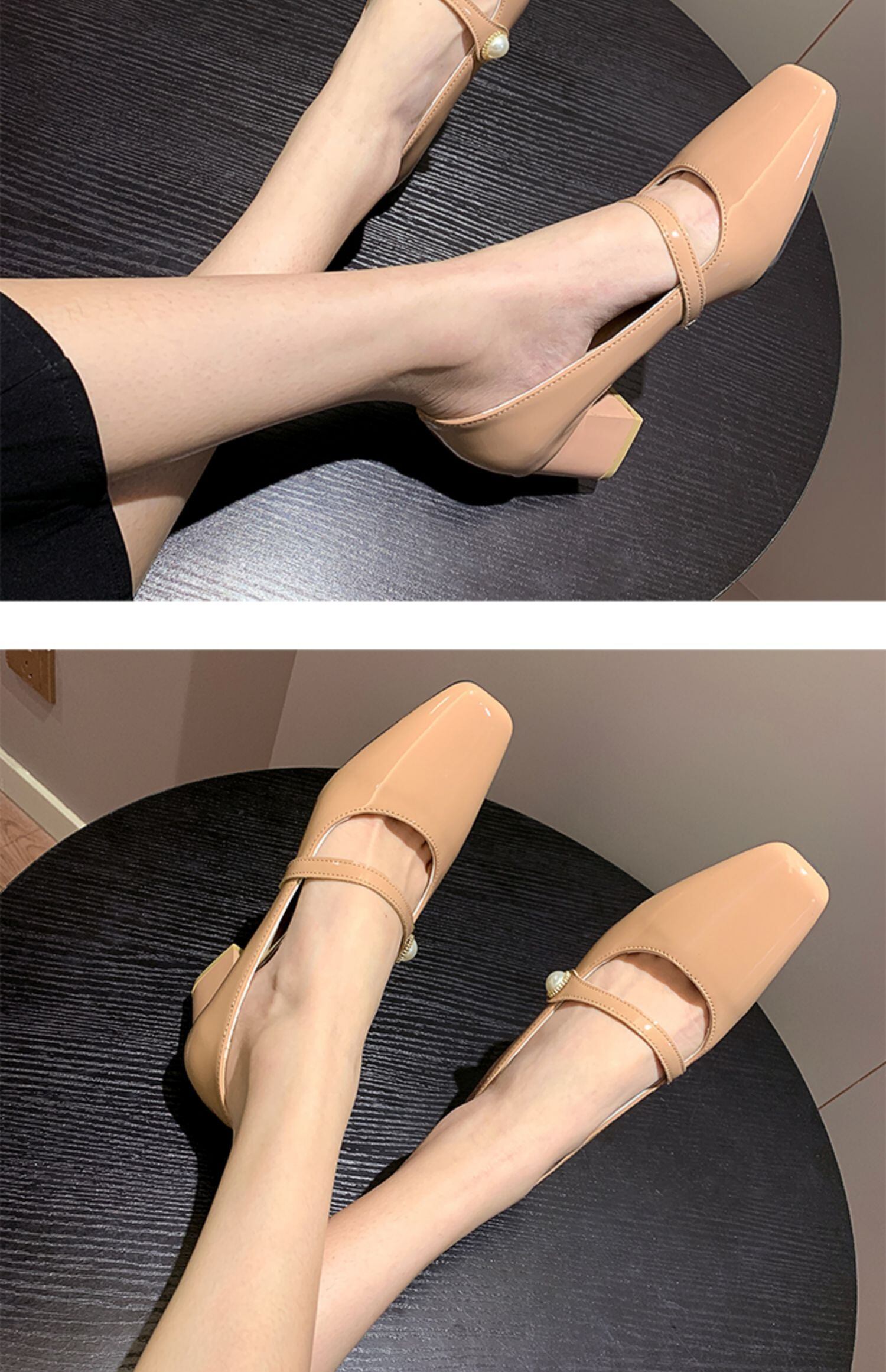 シングルスプリングオータムスタイルハイヒールソリッド カラー 靴 シューズ 春物 秋物 ソリッドカラー スクウェア フェイクシューズ57032212397