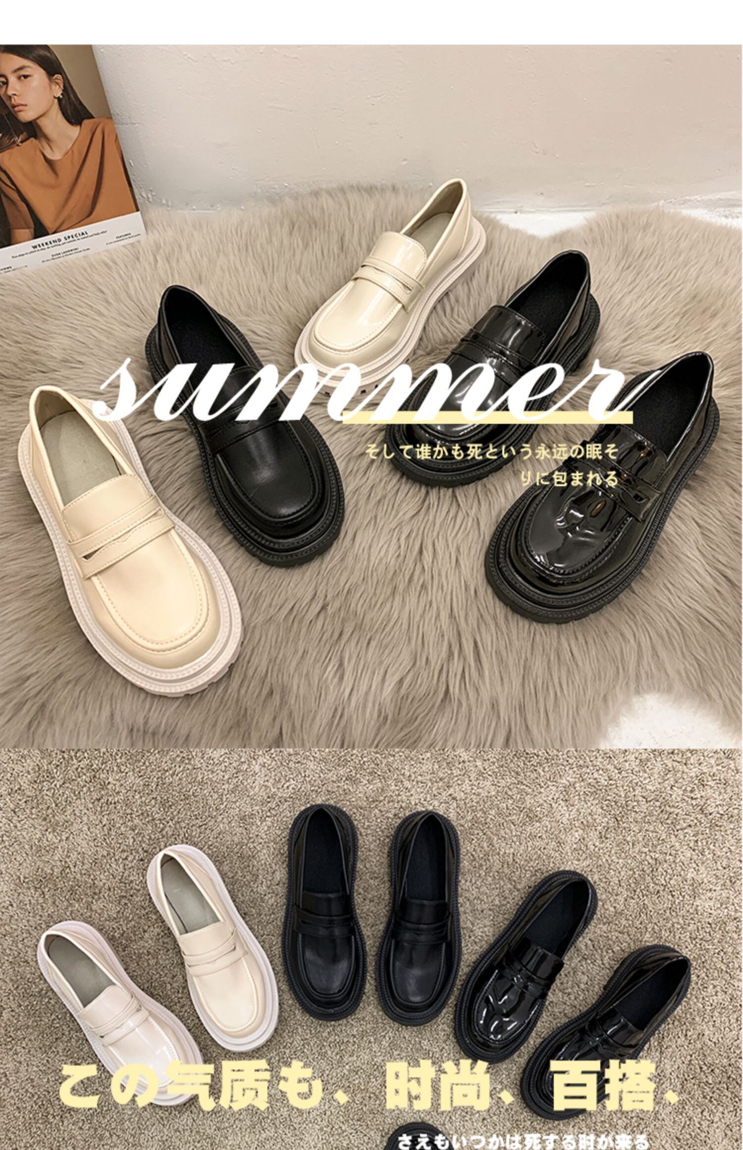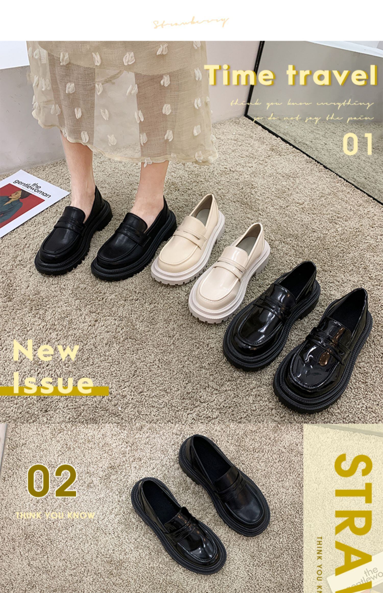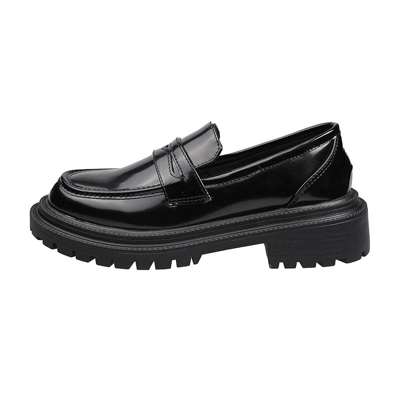 スタンダードスタイルレザースプリングカジュアルセット ブラックシングル 靴 シューズ レトロ 春物 フェイクシューズ23667973797