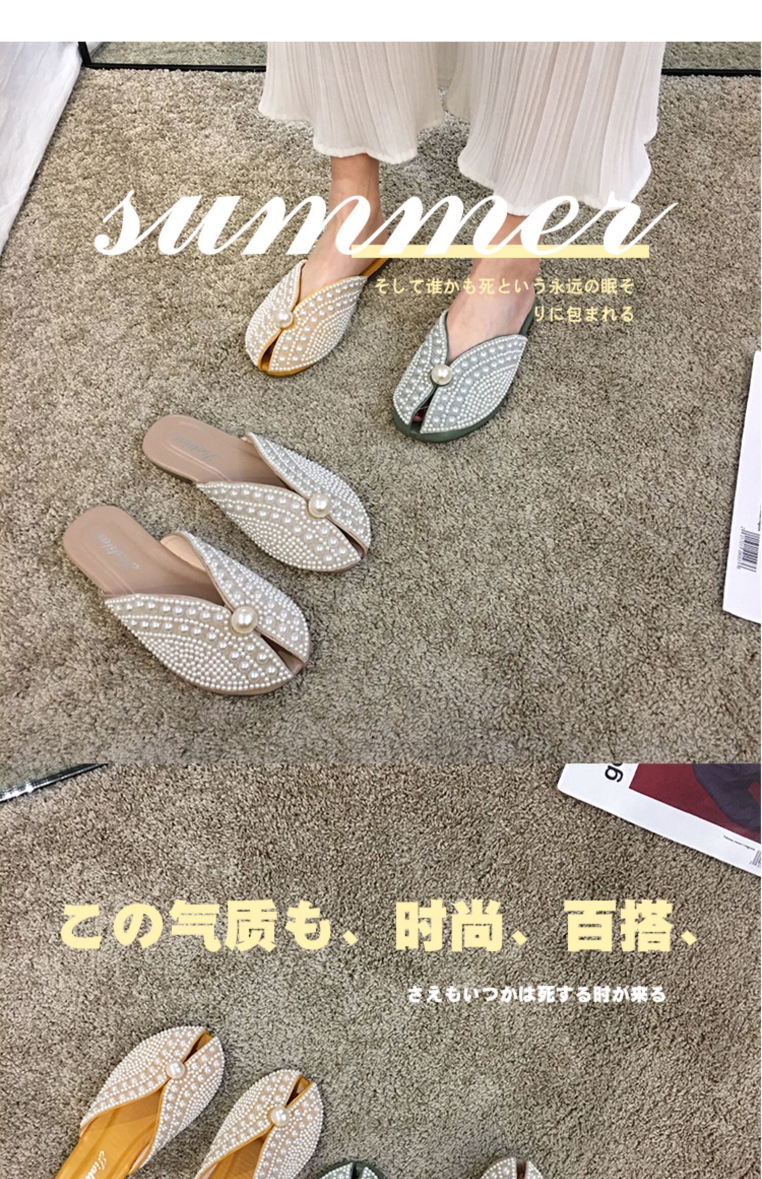 スプリングレッドパールスタイルミュール 靴 シューズ 春物 真珠 フェイクシューズ60745321141