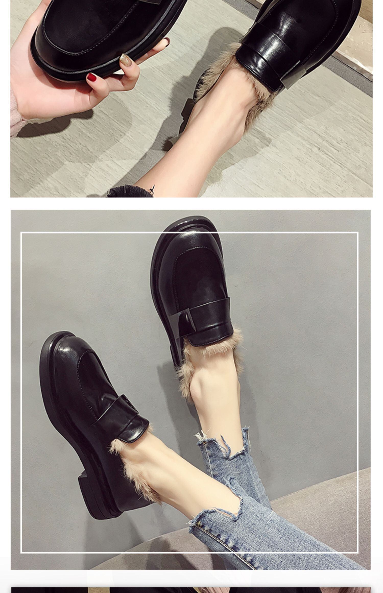 シングルレディーススプリングレザーブラック 靴 シューズ ローファー 春物 ラウンドトー フェイクシューズ16495048293