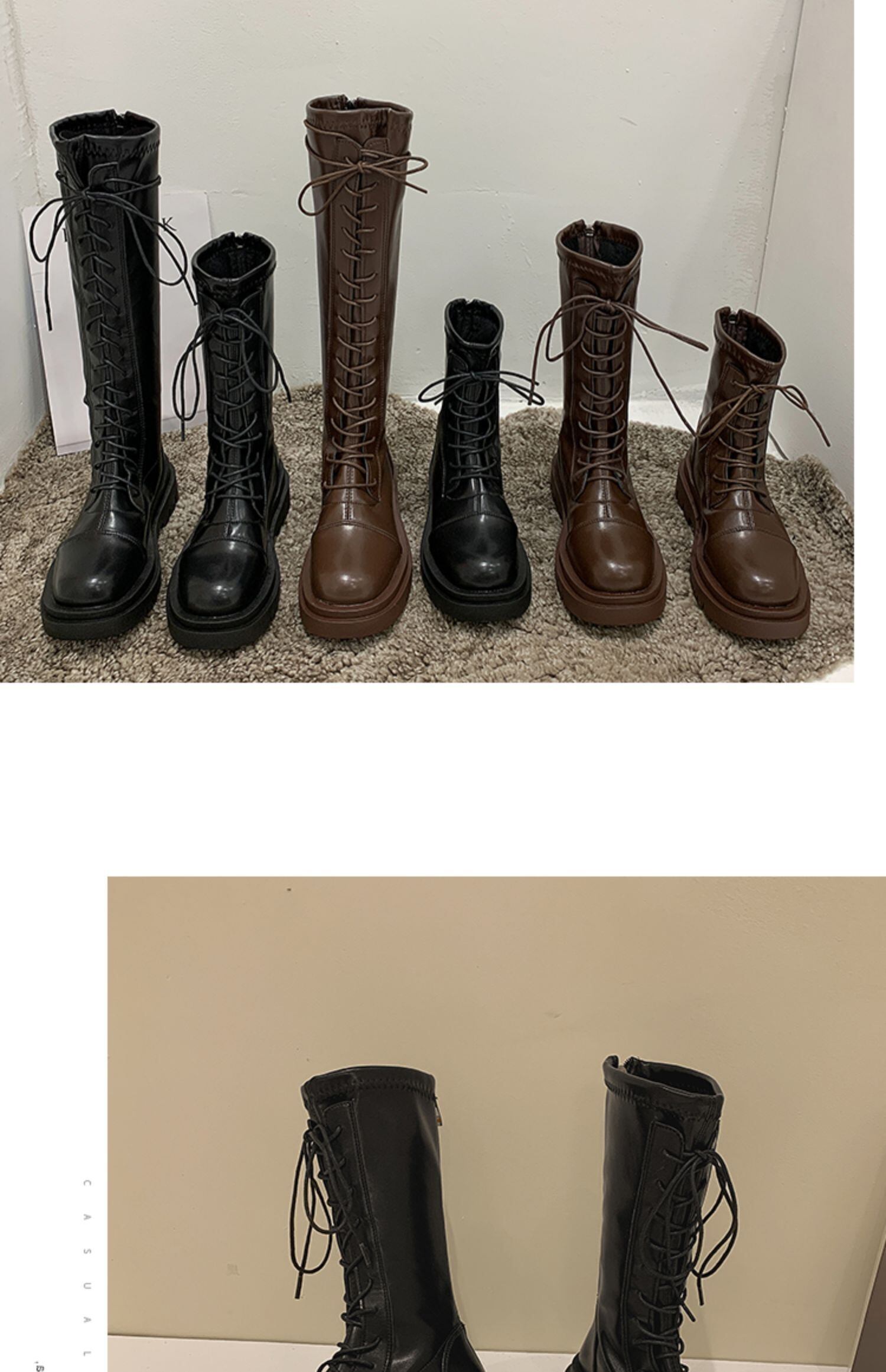 ロングブーツレッドカジュアル 靴 シューズ ラウンドトー フェイクシューズ12604616615