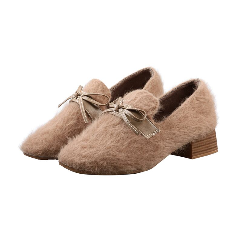 ウィンターレッドリボンカジュアルハイヒールベルベットシングル 靴 シューズ 冬物 スクウェア フェイクシューズ54198568174