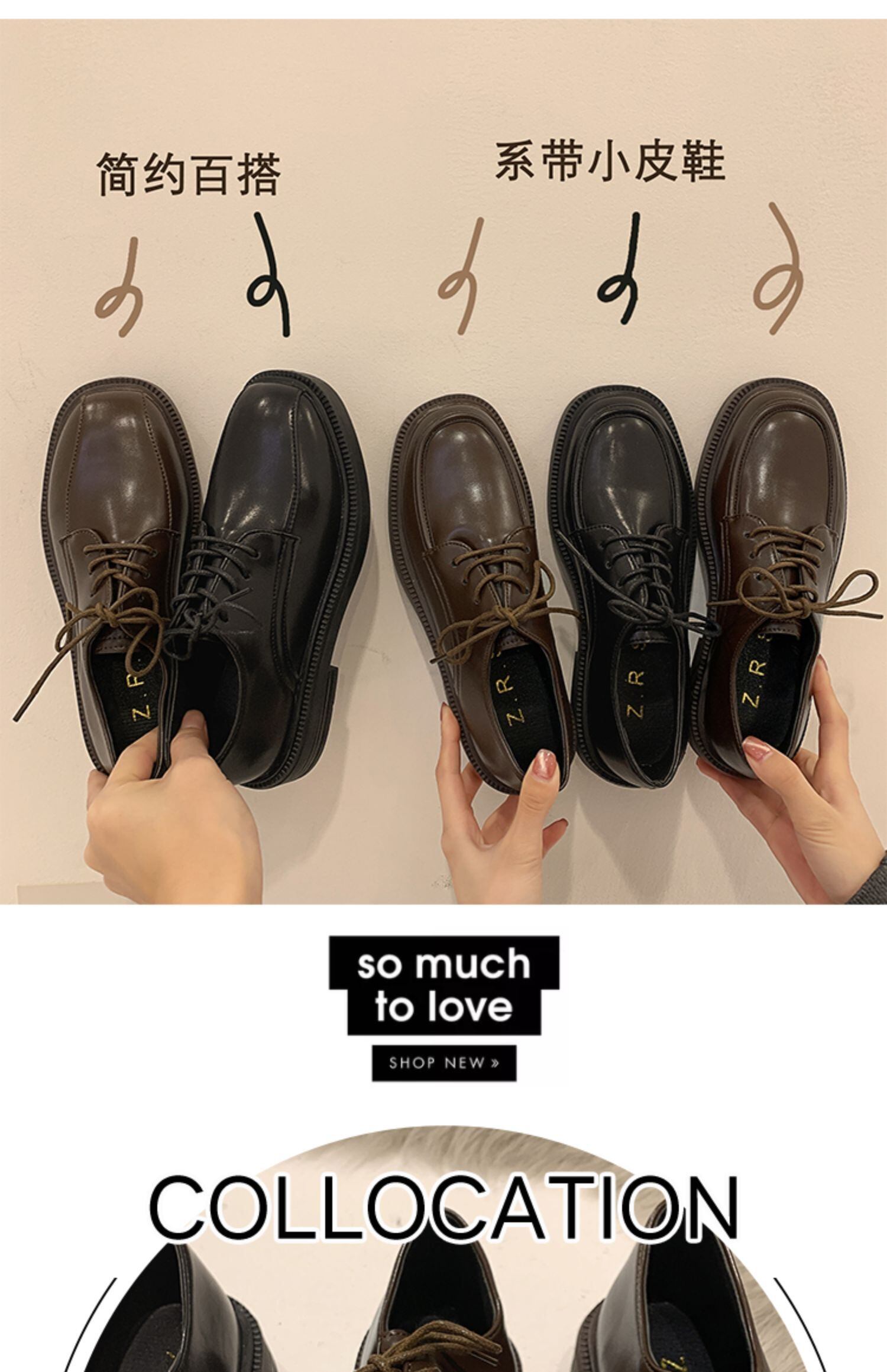 シングルレースブラックレザー 靴 シューズ ラウンドトー フェイクシューズ70527450962