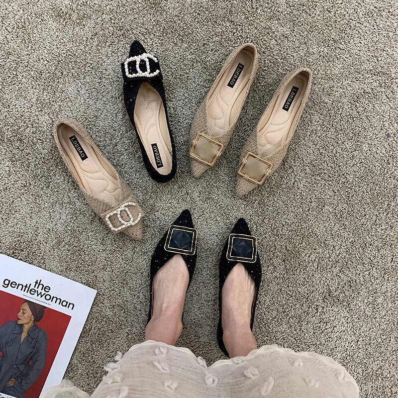 シングルスプリングパールスタイルスクープ 靴 シューズ 春物 真珠 フェイクシューズ7358792224