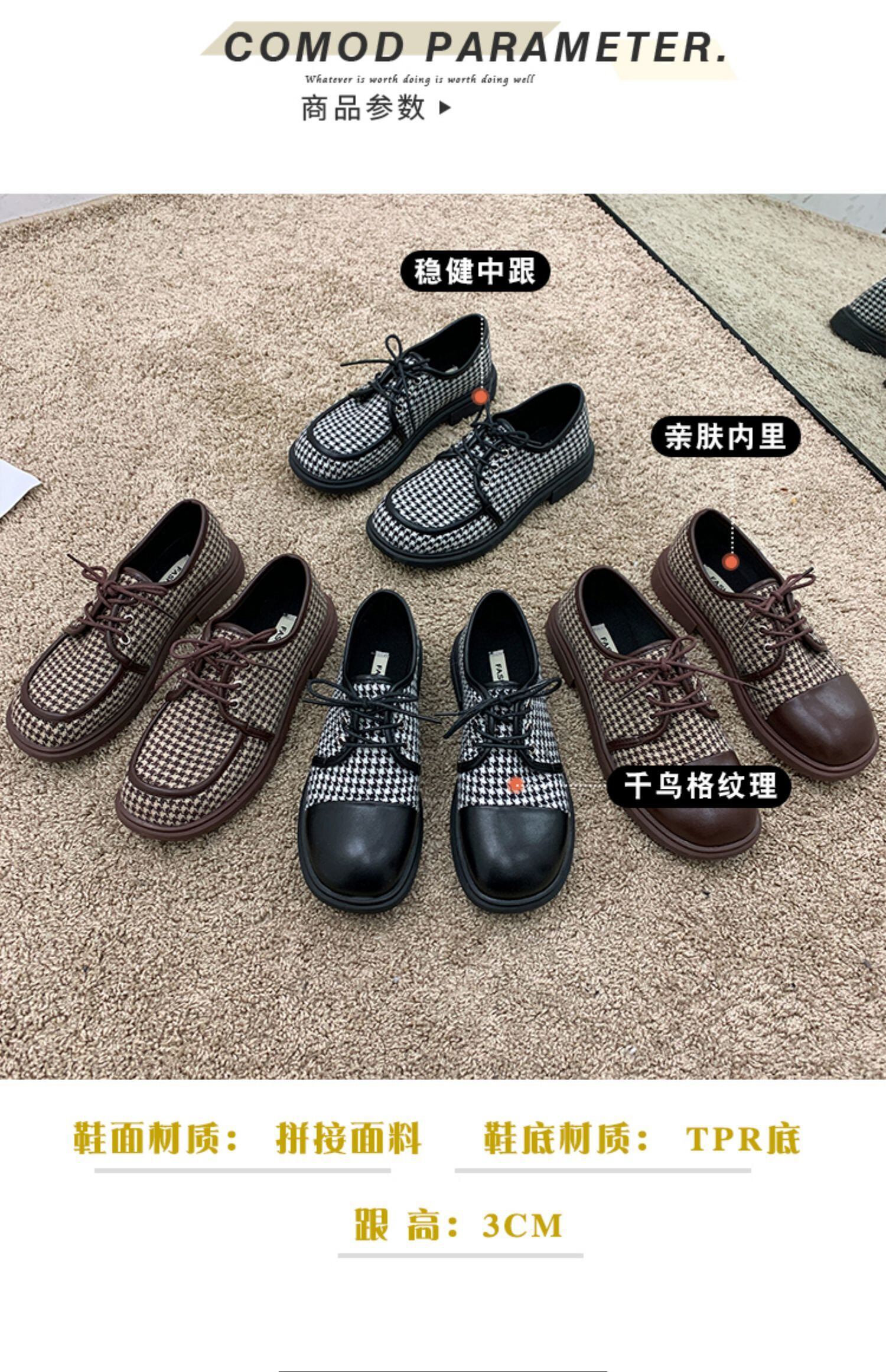スタンダードスタイルレッド格子柄カジュアルレザー 靴 シューズ レトロ レース ローファー レースアップ フェイクシューズ19632902768
