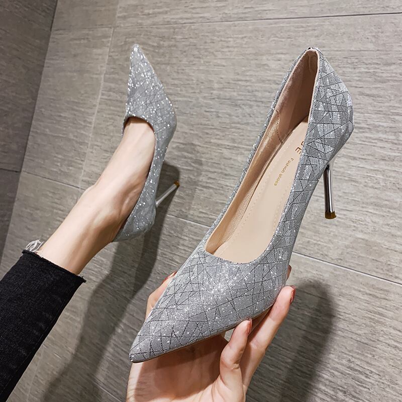 ヒールレッドカジュアルシルバーサテン 靴 シューズ 銀 フェイクシューズ50973986045