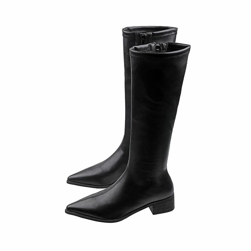 ロングブーツレディースウィンターカジュアルサイドジッパーソリッド カラー 靴 シューズ 冬物 ソリッドカラー フェイクシューズ74944718361