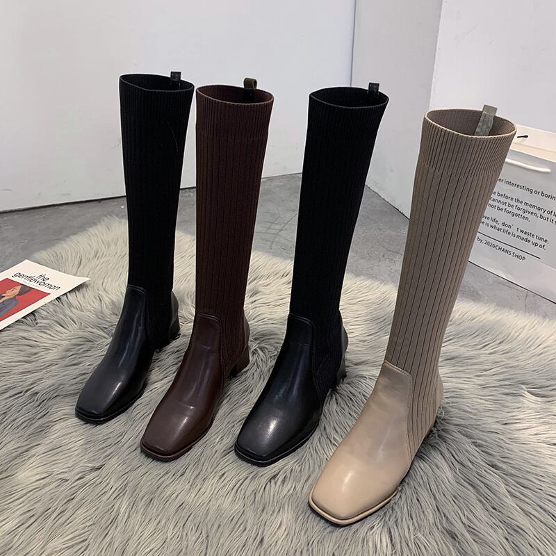 ブーツウィンターストレッチ薄手 靴 シューズ エラスティック 伸縮 冬物 スクウェア フェイクシューズ25776861368