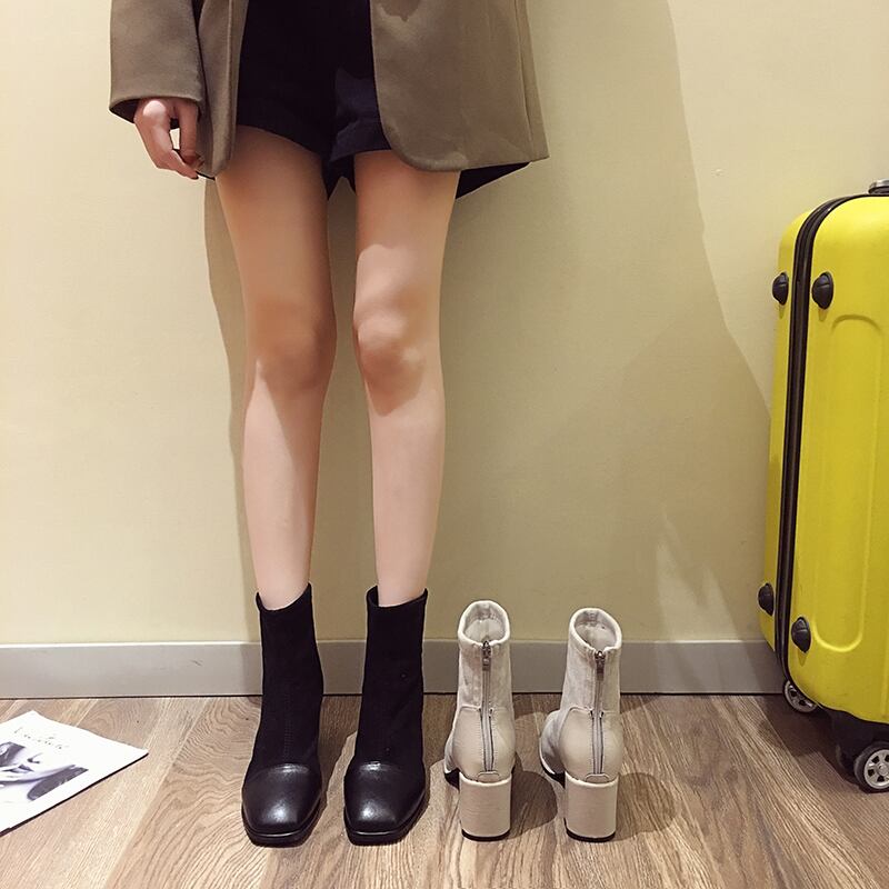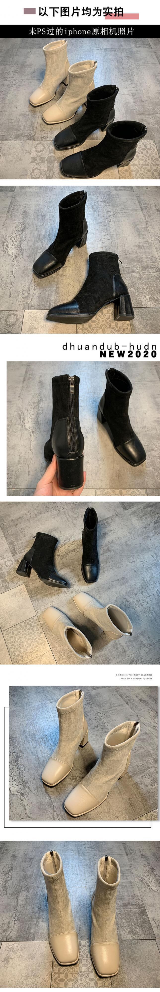ブーツレディースレッドショートカジュアルジッパー 靴 シューズ スクウェア フェイクシューズ37821213133