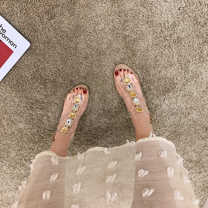 サンダルサマーラインストーンレッドスタイルヒール ハイヒール 靴 シューズ 夏物 フェイクシューズ58057087164