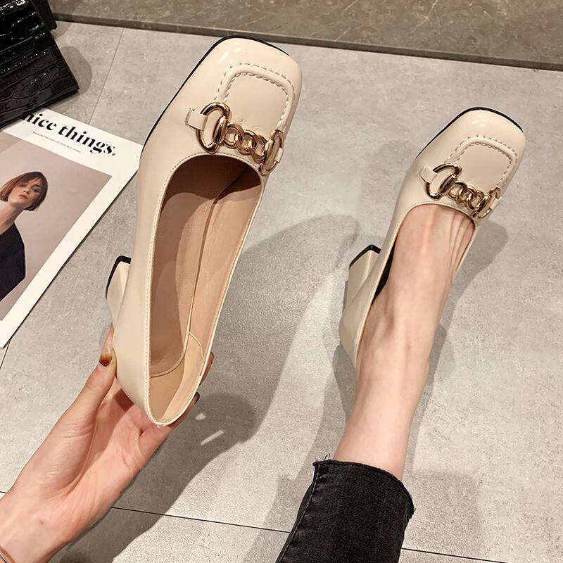 シングルスプリングオータムカラーハイヒール 靴 シューズ 春物 秋物 ピュア スクウェア フェイクシューズ35082817442