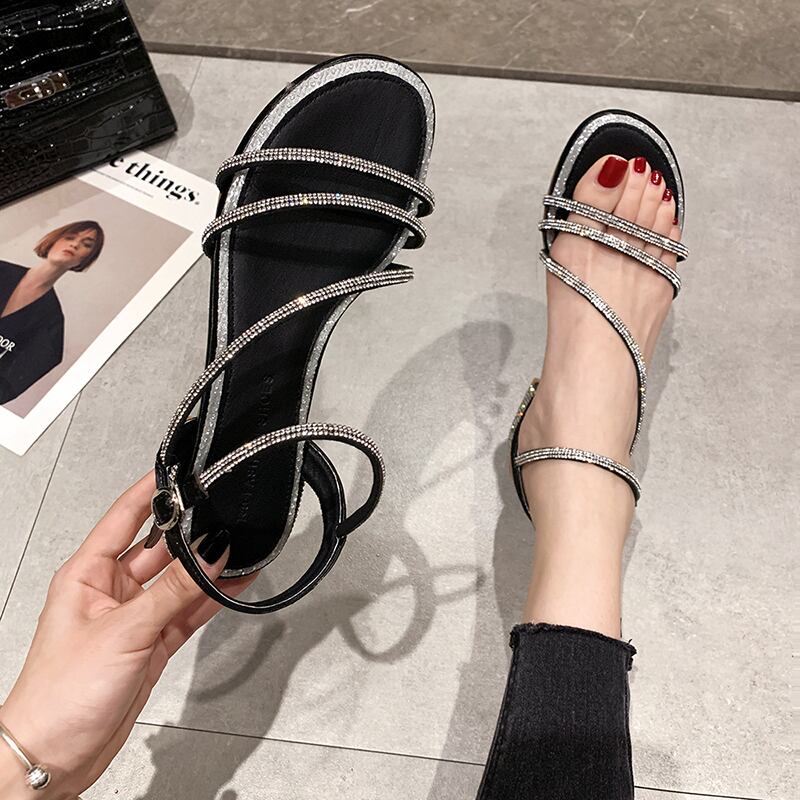サマーラインストーンブラックミュール 靴 シューズ 夏物 フェイクシューズ39684842300