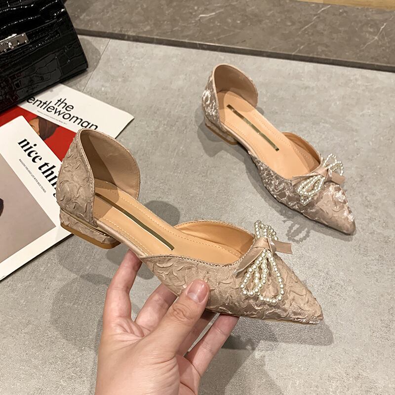 シングルサマースタイルパールリボン 靴 シューズ 夏物 真珠 フェイクシューズ39262674954