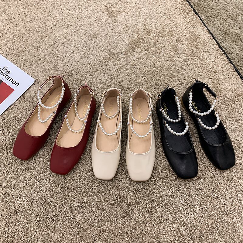 シングルサマーバックルパール 靴 シューズ 夏物 真珠 スクウェア フェイクシューズ3285713280