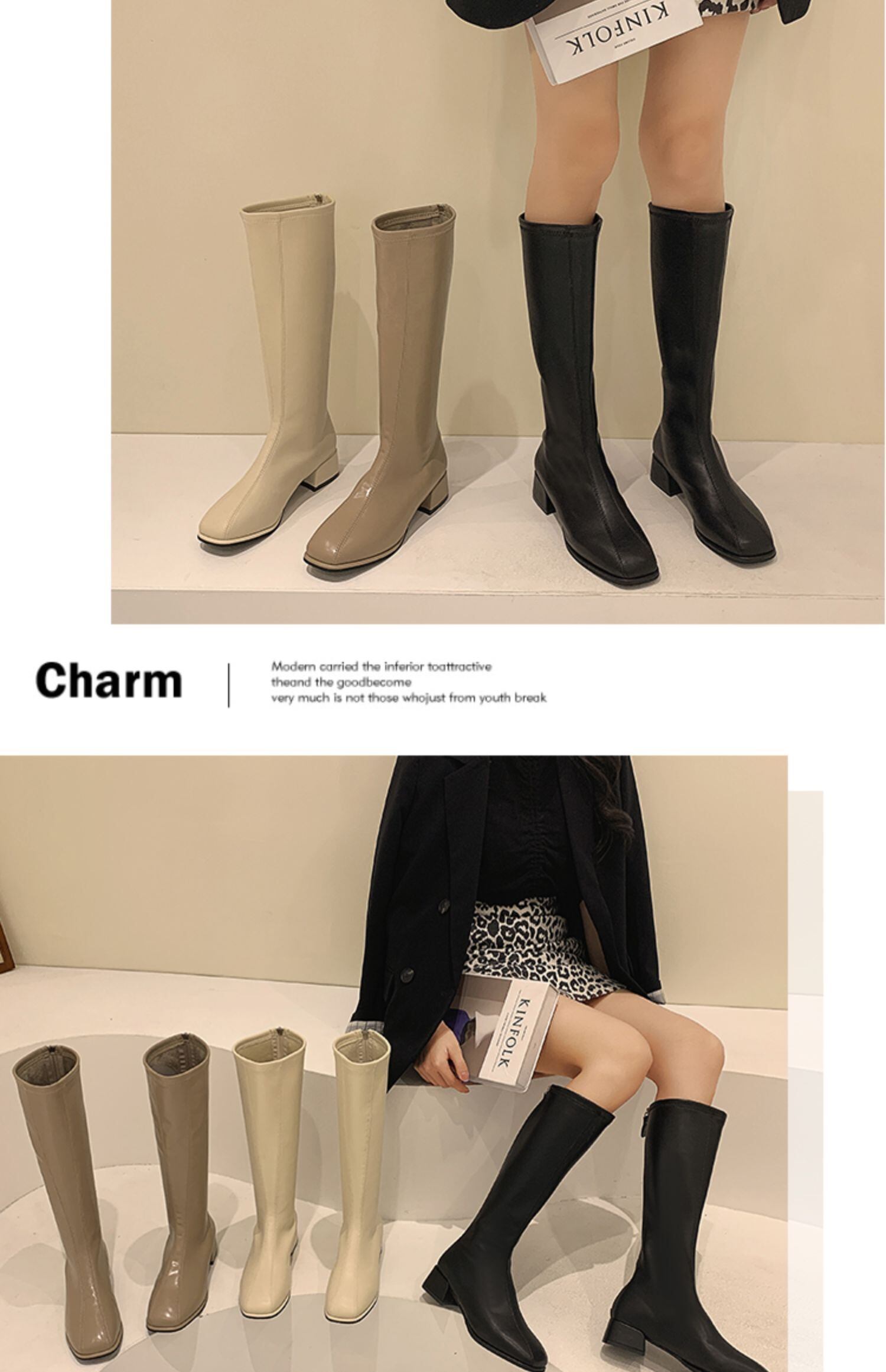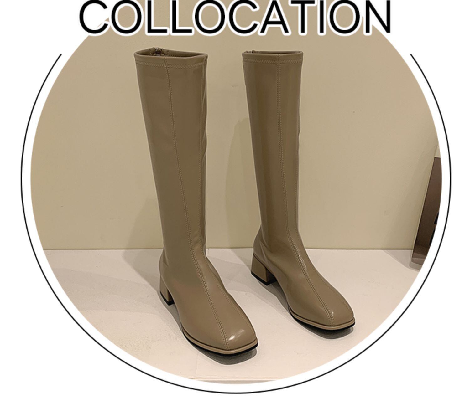 ロングブーツウィンターソリッド カラー 靴 シューズ 冬物 ソリッドカラー スクウェア フェイクシューズ83961472891