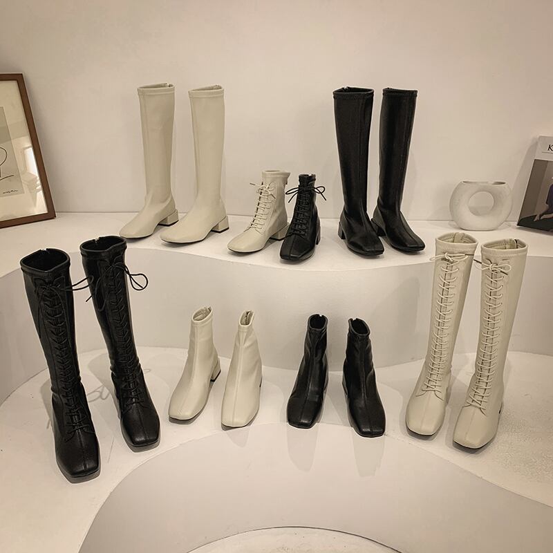 ブーツレディースカジュアルレッドジッパー 靴 シューズ スクウェア フェイクシューズ45556603215