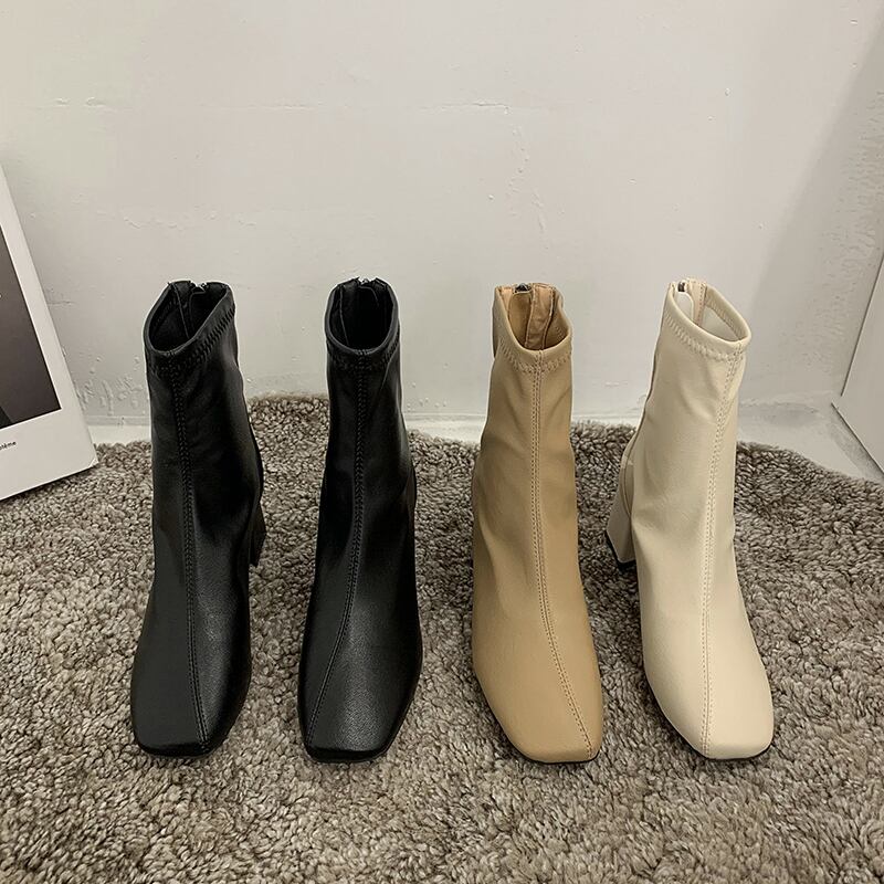 ブーツレディーススプリングスタイルレザーオータムショート薄手 靴 シューズ 春物 秋物 スクウェア フェイクシューズ24551630847