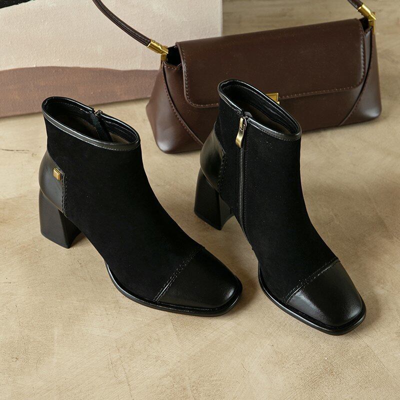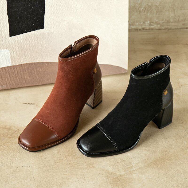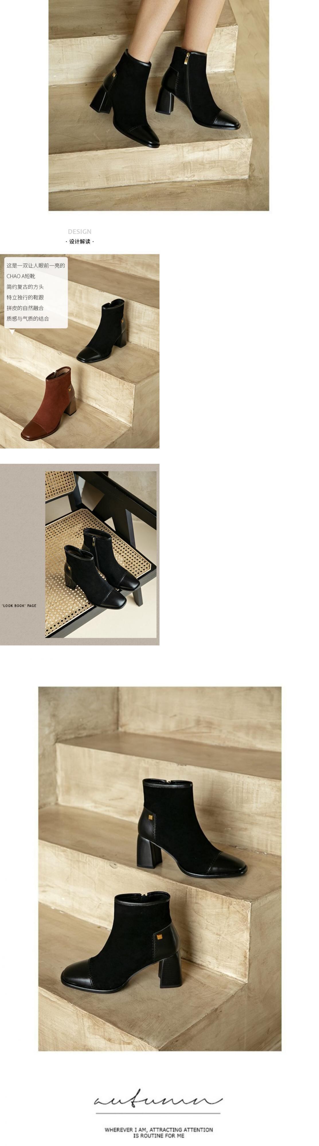 ブーツオータムレッドカジュアルソリッド カラー薄手 靴 シューズ 秋物 ソリッドカラー スクウェア フェイクシューズ26738660178