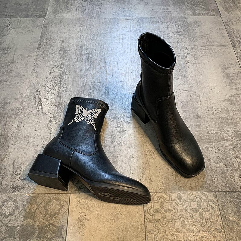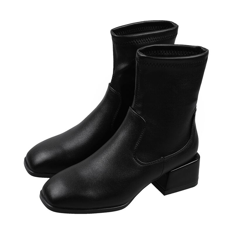 薄手レッドショートブーツカジュアル 靴 シューズ スクウェア フェイクシューズ37661825405