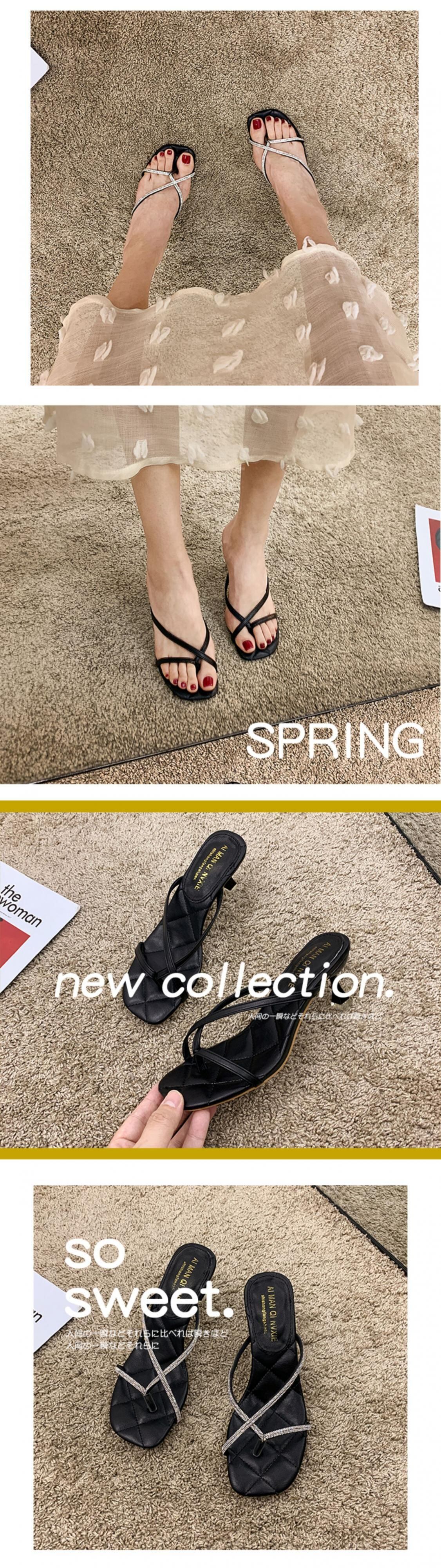 サマーラインストーンハイヒールブラックスタイルミュール 靴 シューズ 夏物 スクウェア フェイクシューズ93319627865