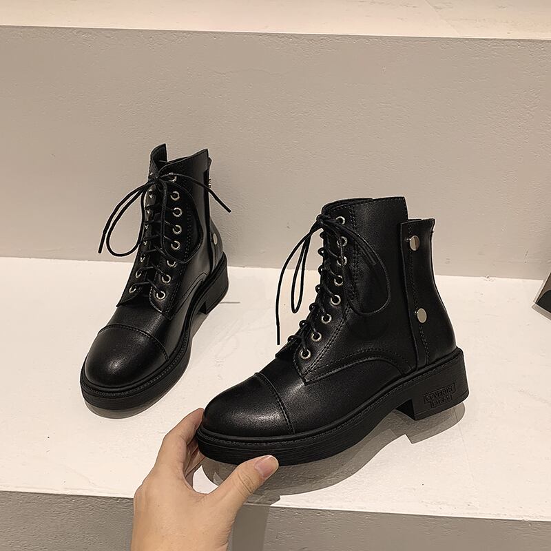 ブーツウィンターブラックショート レース 靴 シューズ 冬物 レースアップ フェイクシューズ54898978798