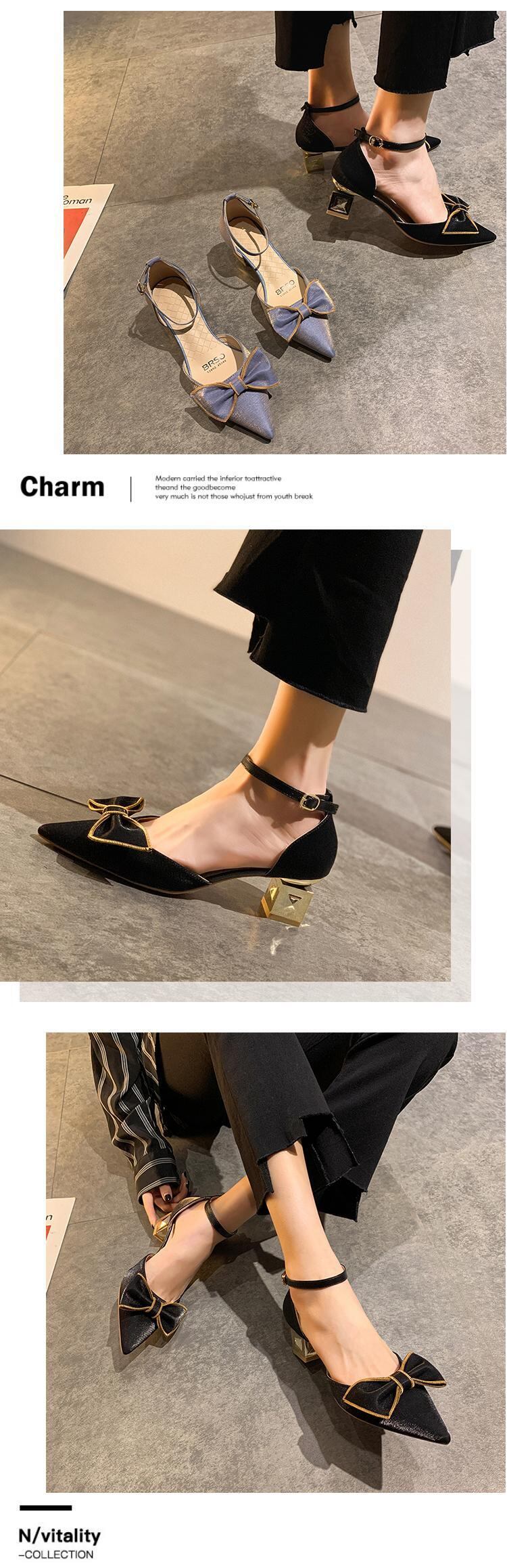 シングルサマーレッドリボンヒール 靴 シューズ ハイヒール 夏物 フェイクシューズ25744924274