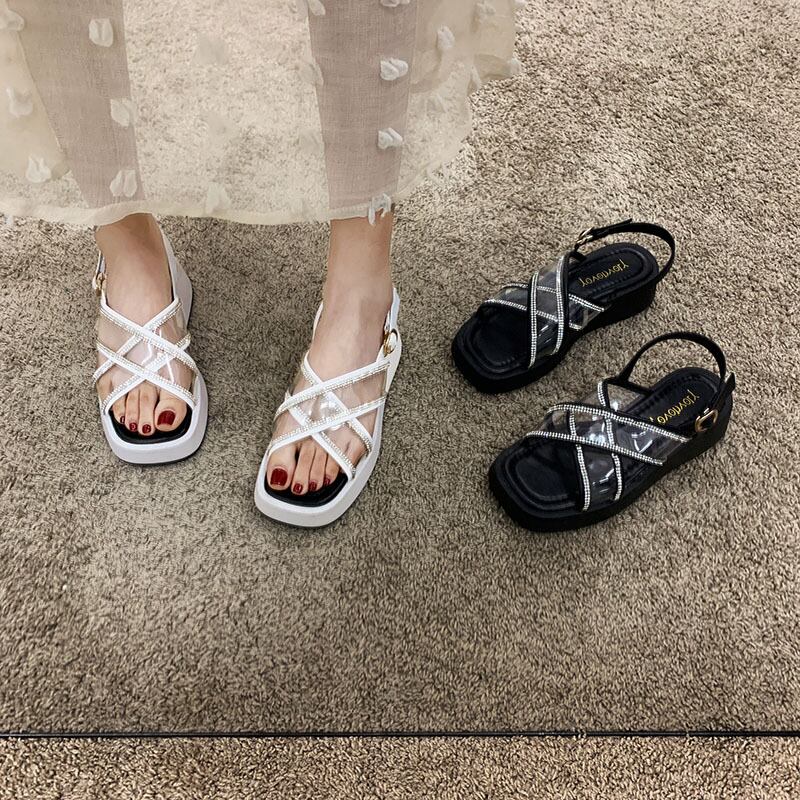 サンダルサマーレッドラインストーン 靴 シューズ 夏物 フェイクシューズ15682470311