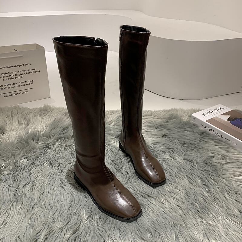 ロングブーツオータムレッドカジュアル 靴 シューズ 秋物 スクウェア フェイクシューズ29827285759