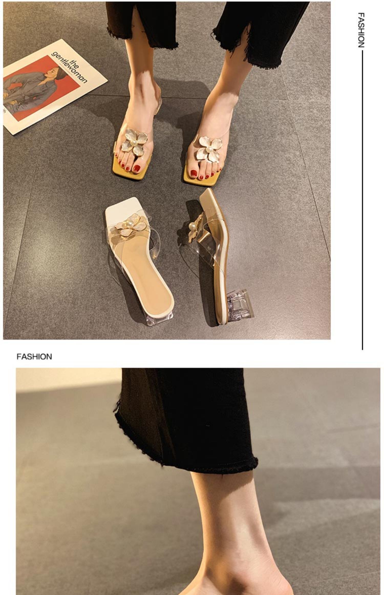 ミュールサマーパールFlowerデザイン クリスタルサンダル 靴 シューズ 夏物 真珠 フラワーデザイン フェイクシューズ1742525900