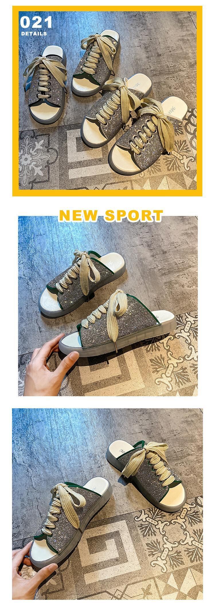 ミュールサマーラインストーンサンダル レース 靴 シューズ 夏物 レースアップ フェイクシューズ37751140837