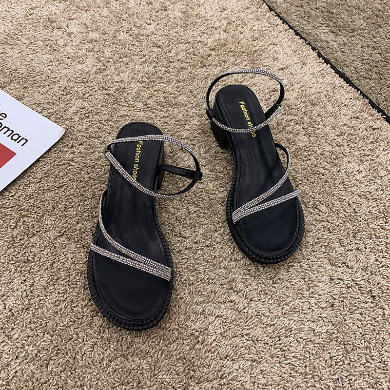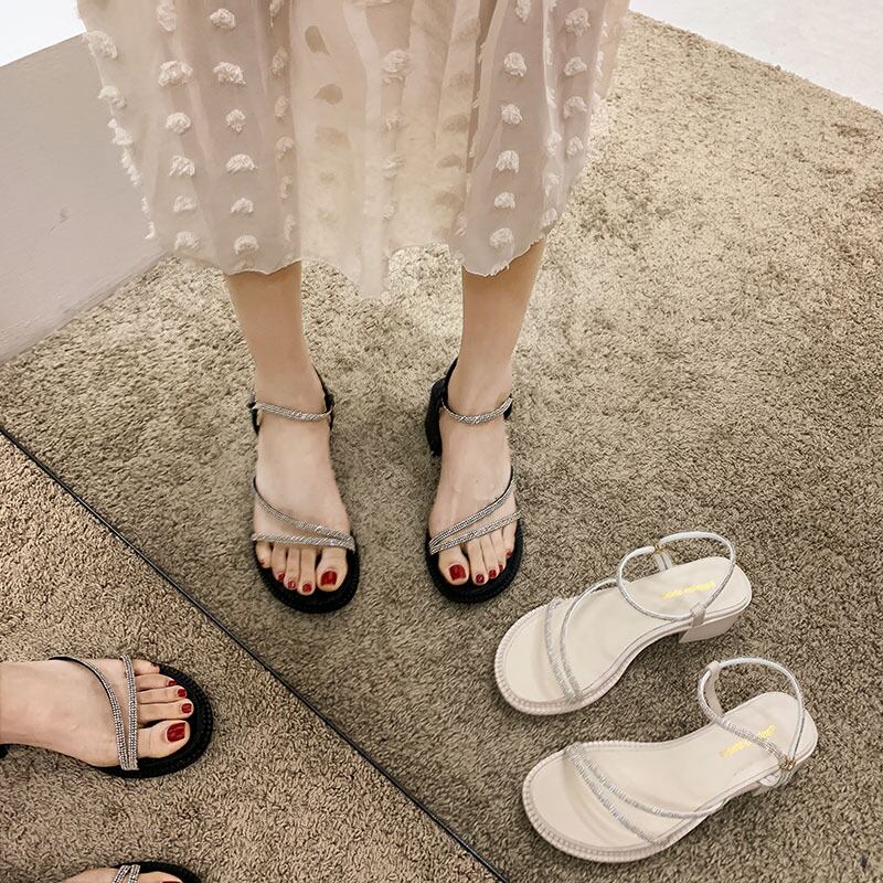 サンダルレディースサマースタイルラインストーンヒール ハイヒール 靴 シューズ 夏物 フェイクシューズ49189978356