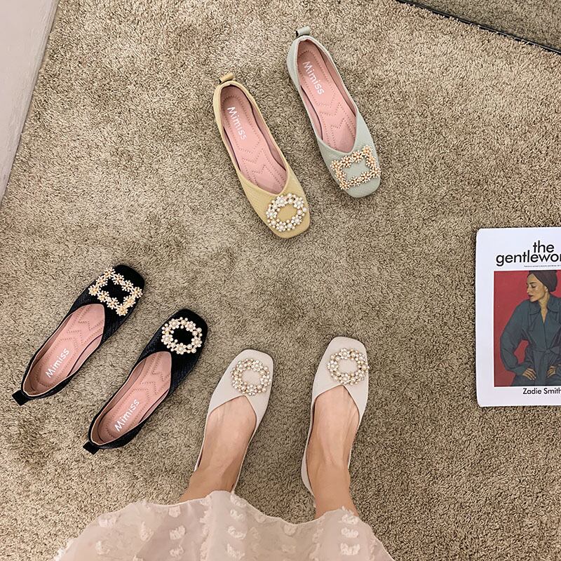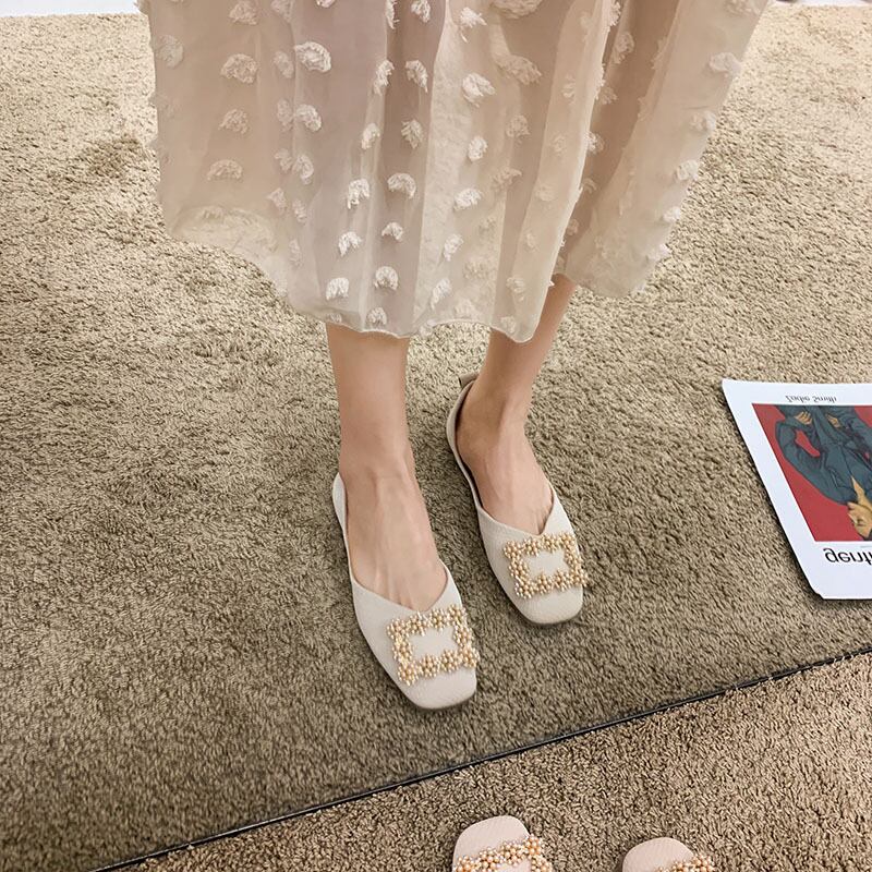 サマーパールバックルスタイルスクープ 靴 シューズ 夏物 真珠 スクウェア フェイクシューズ21283895138