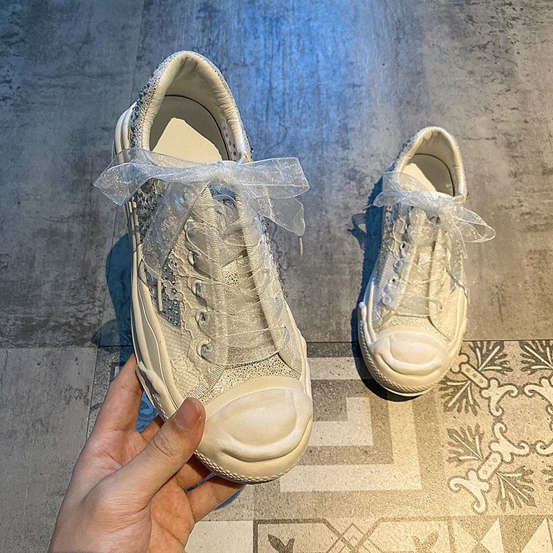 レディースサマーメッシュラインストーンホワイト 靴 シューズ 夏物 フェイクシューズ42499824105