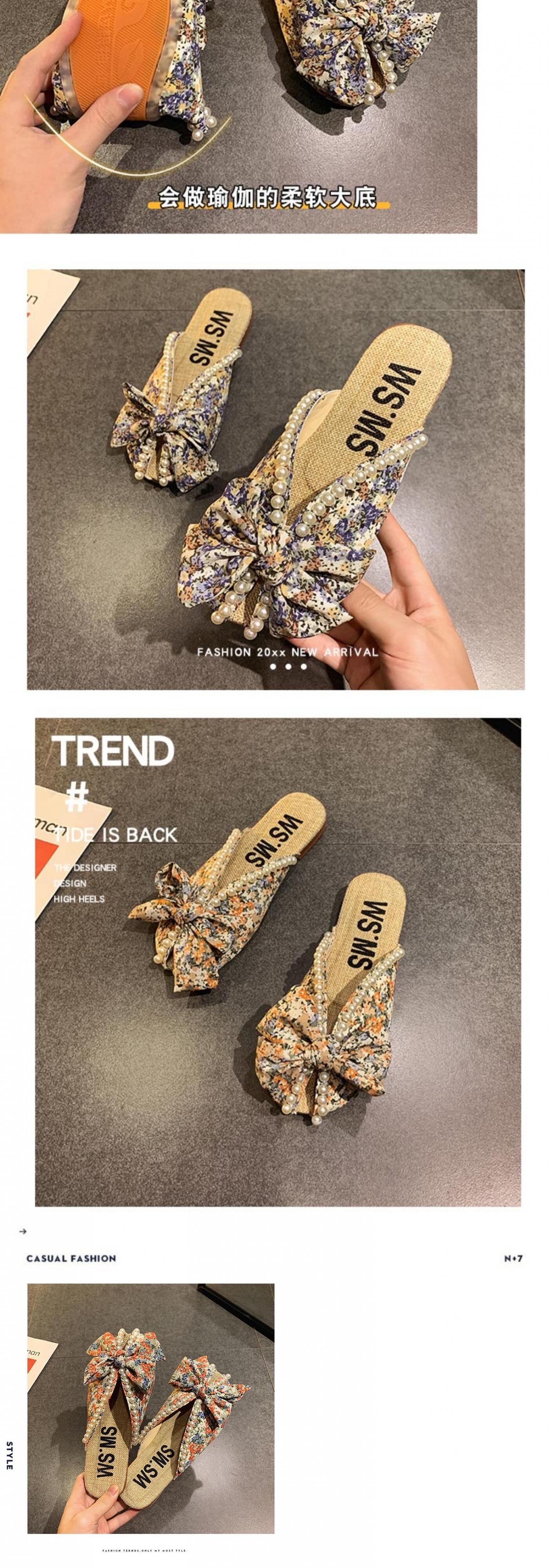 ミュールサマーパールフローラルリボンサンダル 靴 シューズ 夏物 花柄 真珠 フェイクシューズ14657074371