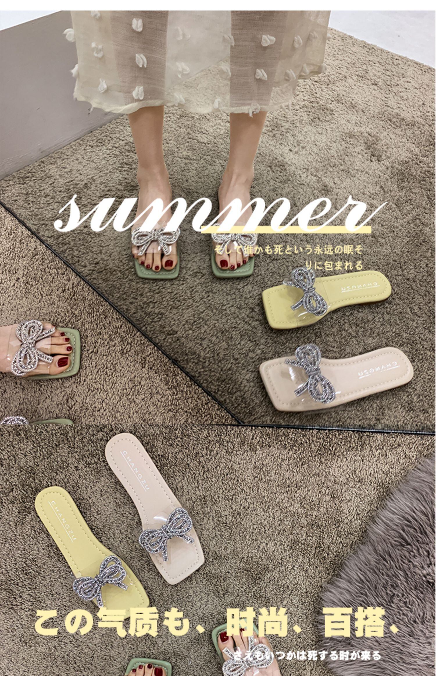 サンダルサマーリボンラインストーンミュール 靴 シューズ 夏物 スリッポン フェイクシューズ30263396798