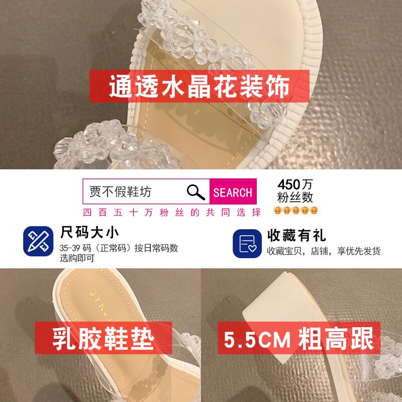 ミュールレディースサマースタイルクリスタルFlowerデザイン ヒール ハイヒール 靴 シューズ 夏物 フラワーデザイン フェイクシューズ92725083720