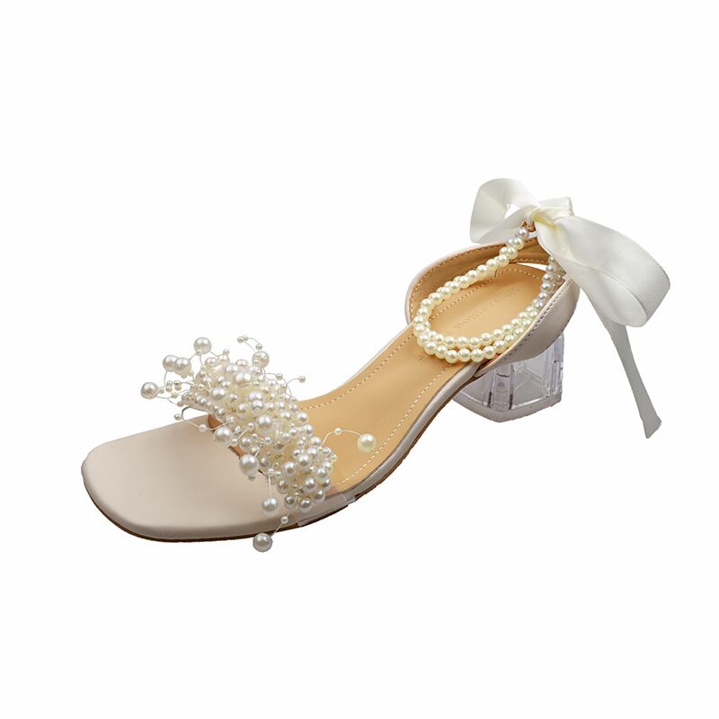 サンダルサマーパールクリスタルレッドスタイルヒール ハイヒール 靴 シューズ 夏物 真珠 フェイクシューズ77345498300