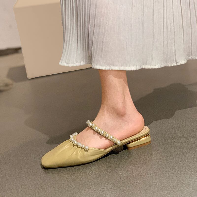 レディースサマーレッドパールサンダルミュール 靴 シューズ 夏物 真珠 フェイクシューズ48091784019