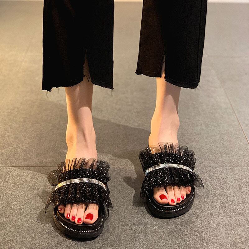 サマーラインストーンサンダルミュール 靴 シューズ 夏物 フェイクシューズ53385956054